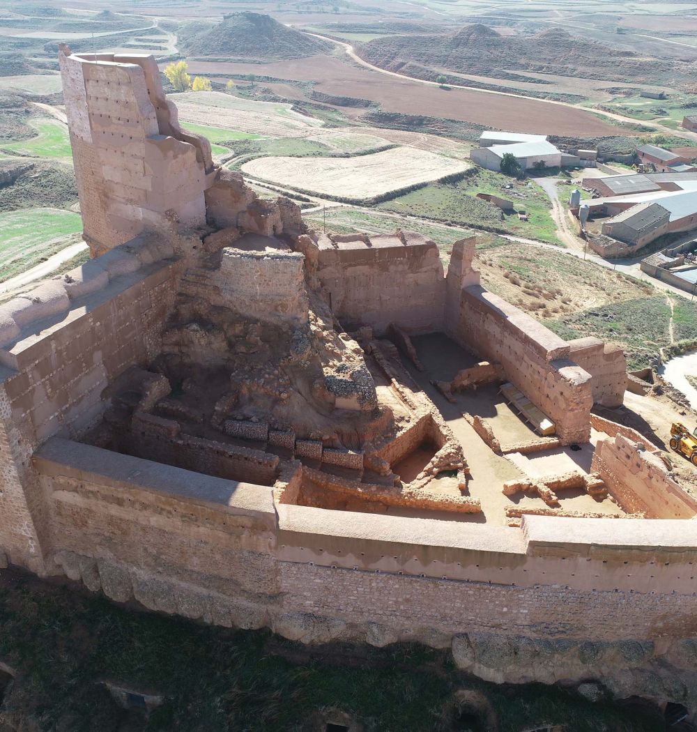 Conforme fueron emergiendo los restos de los muros interiores del castillo, se fueron apeando y consolidando provisionalmente para evitar su desmoronamiento.