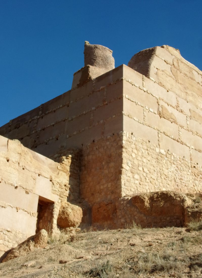 La mayor parte de los muros de sus tres primeros recintos amurallados están realizados con la técnica de la tapia de tierra calicostrada con mortero de cal y agujas de madera pasantes. Si se observa con un poco de detenimiento, rápidamente se percibe que la tapia no es igual en todos los muros y que incluso en una misma estructura existen distintos tipos de tapia. Estas diferencias obedecer a las sucesivas etapas constructivas, frecuentemente acompañadas de reparaciones y aumentos de altura de los muros ya existentes, empleando nuevos tipos de tapia.